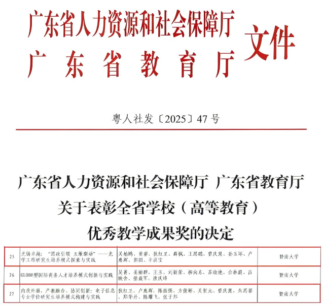 喜报|光电工程系2项成果荣获2025年广东省优秀教学成果奖