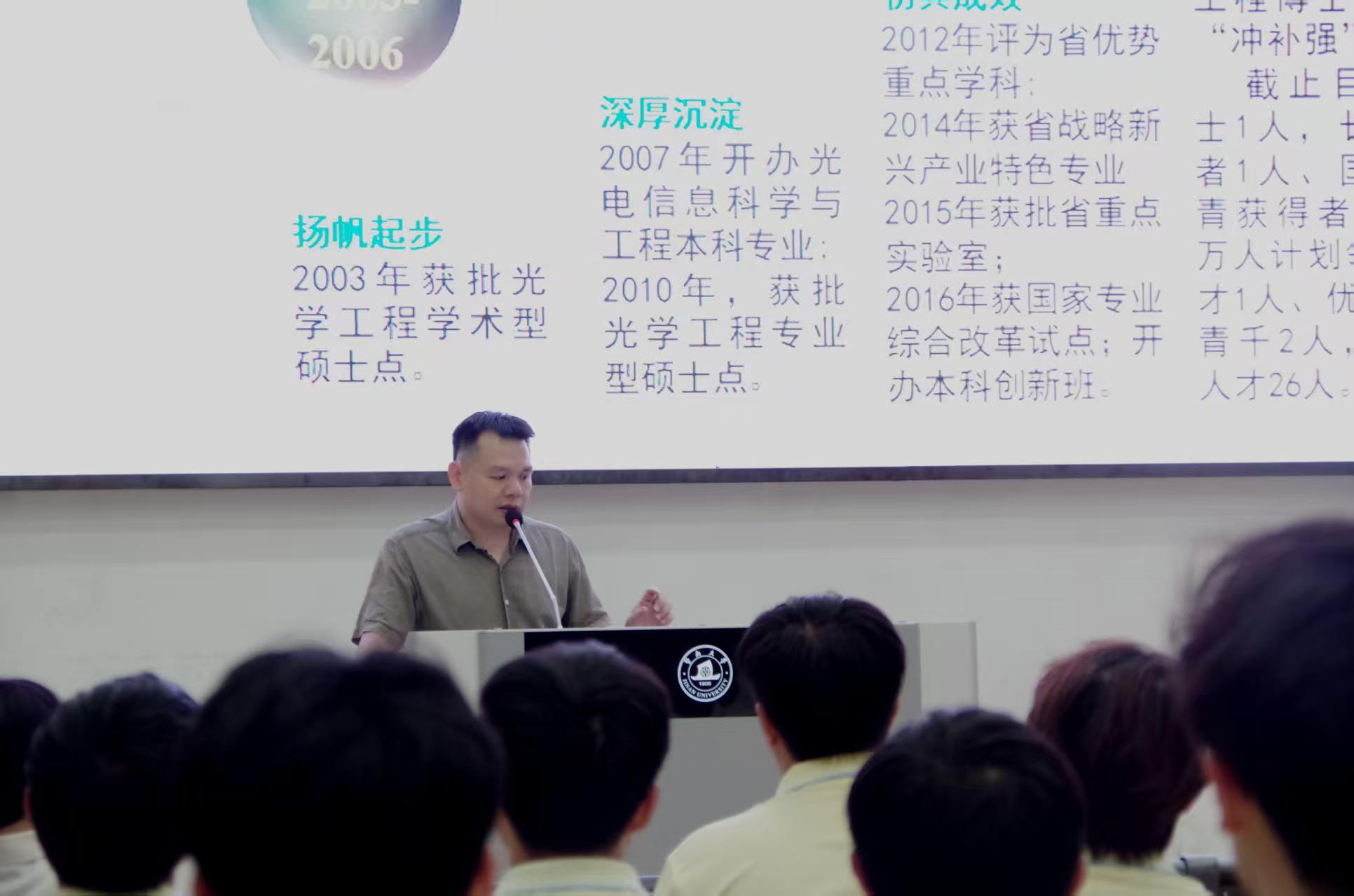 最后,与会师生共同观看了展现光电工程系学科特色与学子风采的宣传短片。短片生动呈现了实验室前沿探索、学科竞赛拼搏瞬间以及丰富多彩的校园文化生活,点燃了新生对专业前景的憧憬与奋斗热情。