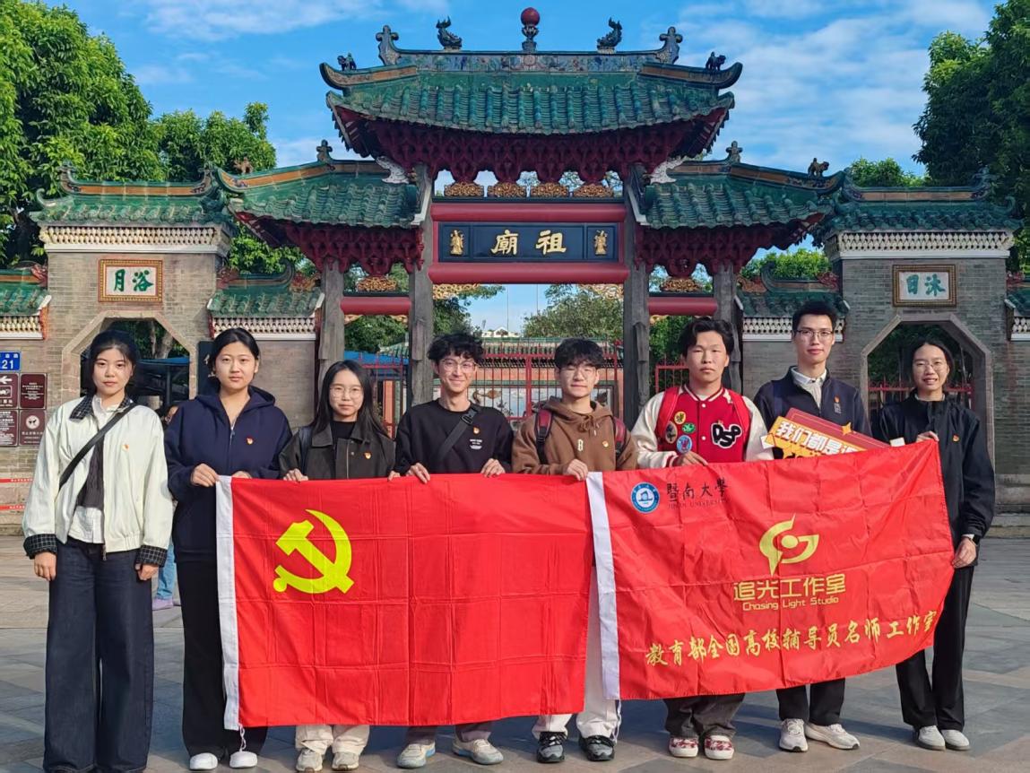 为追寻革命先辈的信仰之光,传承红色基因,激励青年党员在新时代勇担使命,11月20日,教育部全国高校辅导员名师工作室——“聚力追光”思政教育工作室(追光工作室)、物理与光电工程学院(理工学院)光电工程系本科生党支部以 “追光之前行” 为主题,组织全体党员前往祖庙、陈铁军故居等地开展主题党日活动,在实地学习中感悟初心使命,在交流分享中凝聚奋进力量。