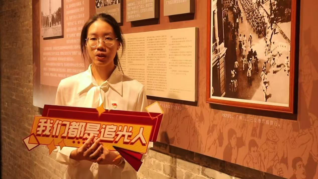 在故居的红色氛围烘托下,微党课分享环节如期开展。学生党员代表黄贺源以《信念的接力 —— 从革命赛场到全运赛场》为题,将陈铁军等革命先辈“追寻真理之光”的牺牲精神,与当代体育健儿“逐梦奥运、为国争光”的拼搏精神相连,阐释“不同时代的共产党人,都是在各自‘赛场’上坚守信念的追光者”;学生党员代表温悦围绕《团结的协奏 —— 由“湾区同心”到支部同心》,从革命年代“并肩追光”、大湾区“协同发光”,谈到支部“同心聚光”,强调“团结是凝聚力量、砥砺前行的不竭光源”。两位代表以饱满的情感、坚定的眼神完成分享。