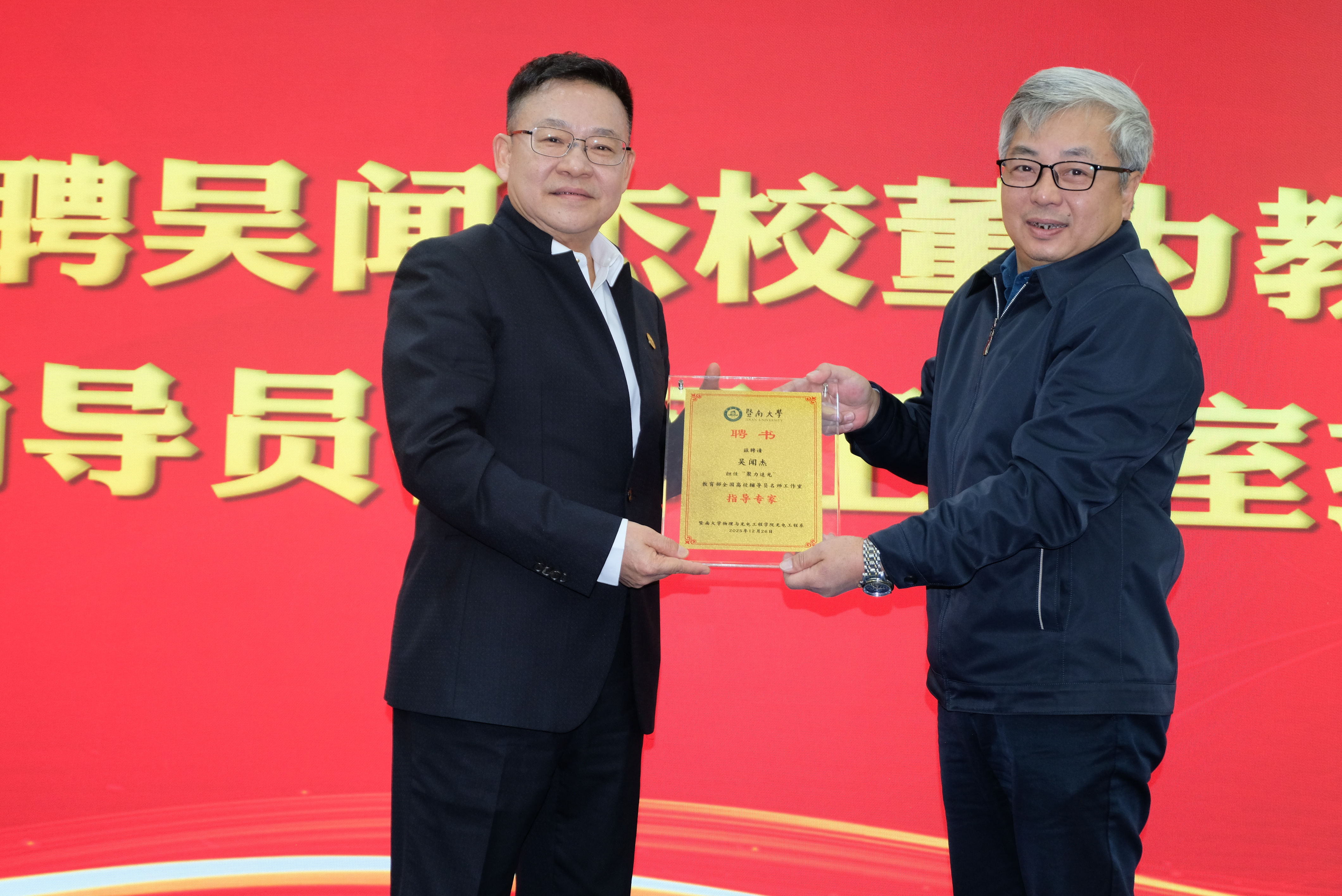 黄睿向吴闻杰颁发指导专家聘书