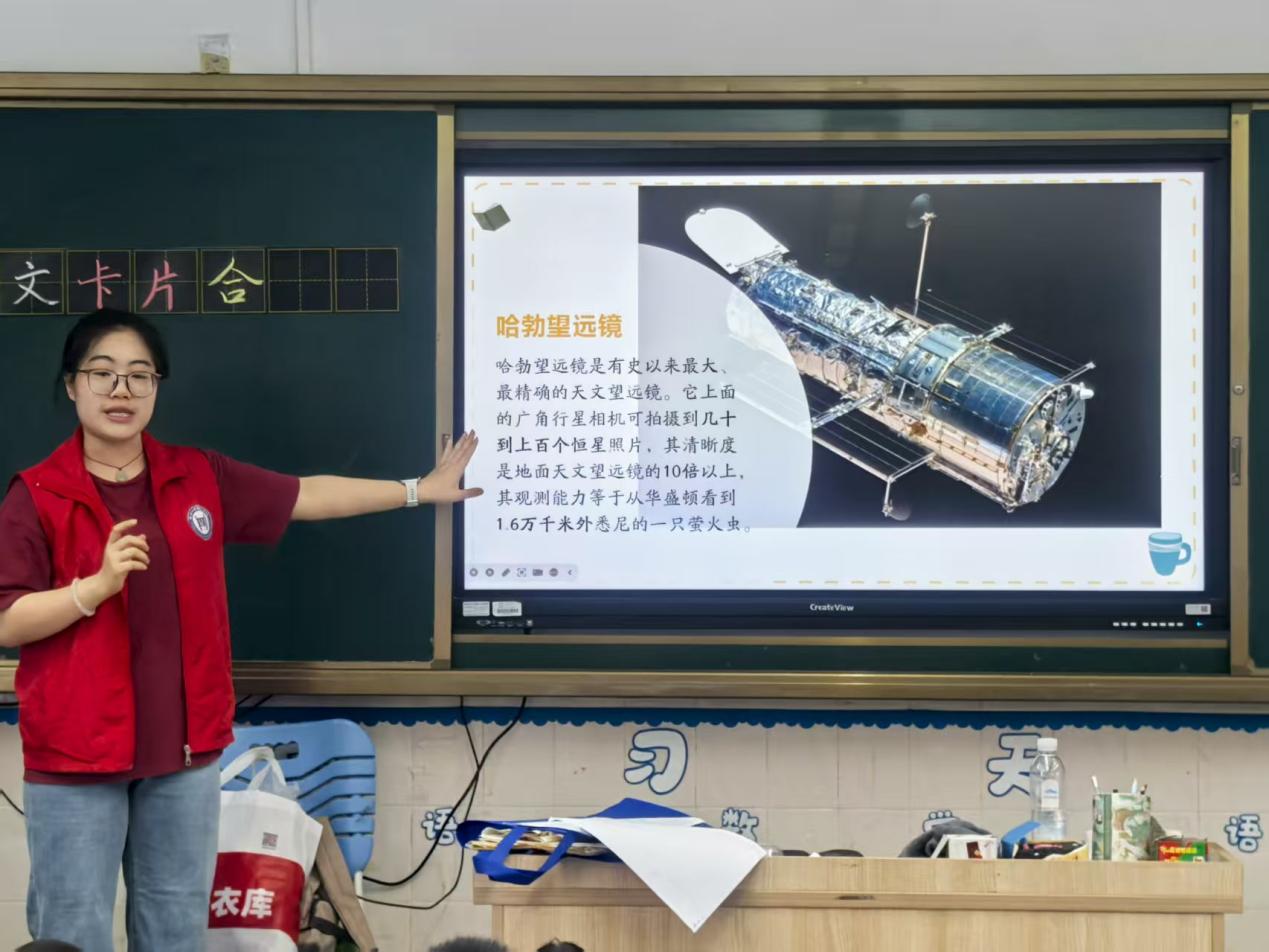 本次科普活动围绕“光学小故事”“奇妙光学世界”“动手做实验”与“光学应用”四大板块系统展开。活动伊始,志愿者以“什么是光?”“为什么会有彩虹?”等贴近生活的问题启发思考,迅速点燃了孩子们的热情。随后,志愿者娓娓道来,从我国古代墨子发现“小孔成像”,到近代显微镜、望远镜的发明,再到现代哈勃太空望远镜的探索,一段跨越千年的光学发展史以故事的形式呈现,让孩子们在聆听中感受科学传承的魅力与科学家们的探索精神。